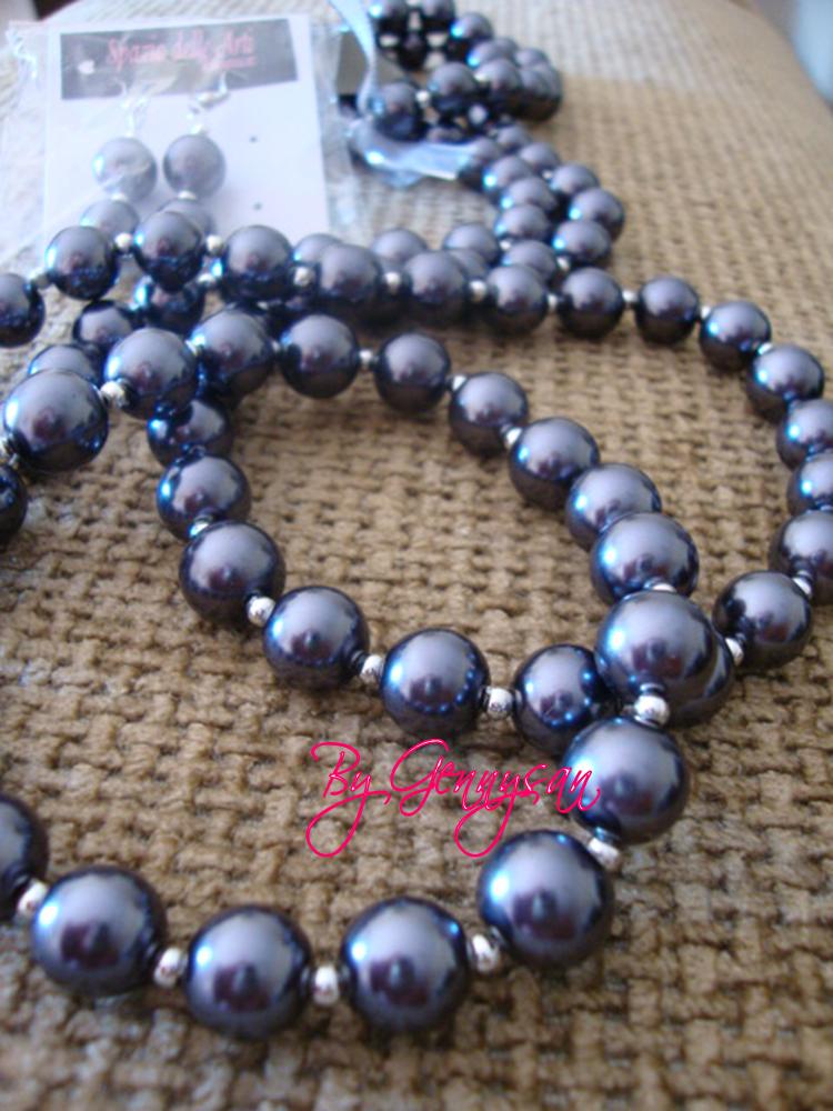 Pérolas entrelaçadas com fita voil preta - comprimento regulável